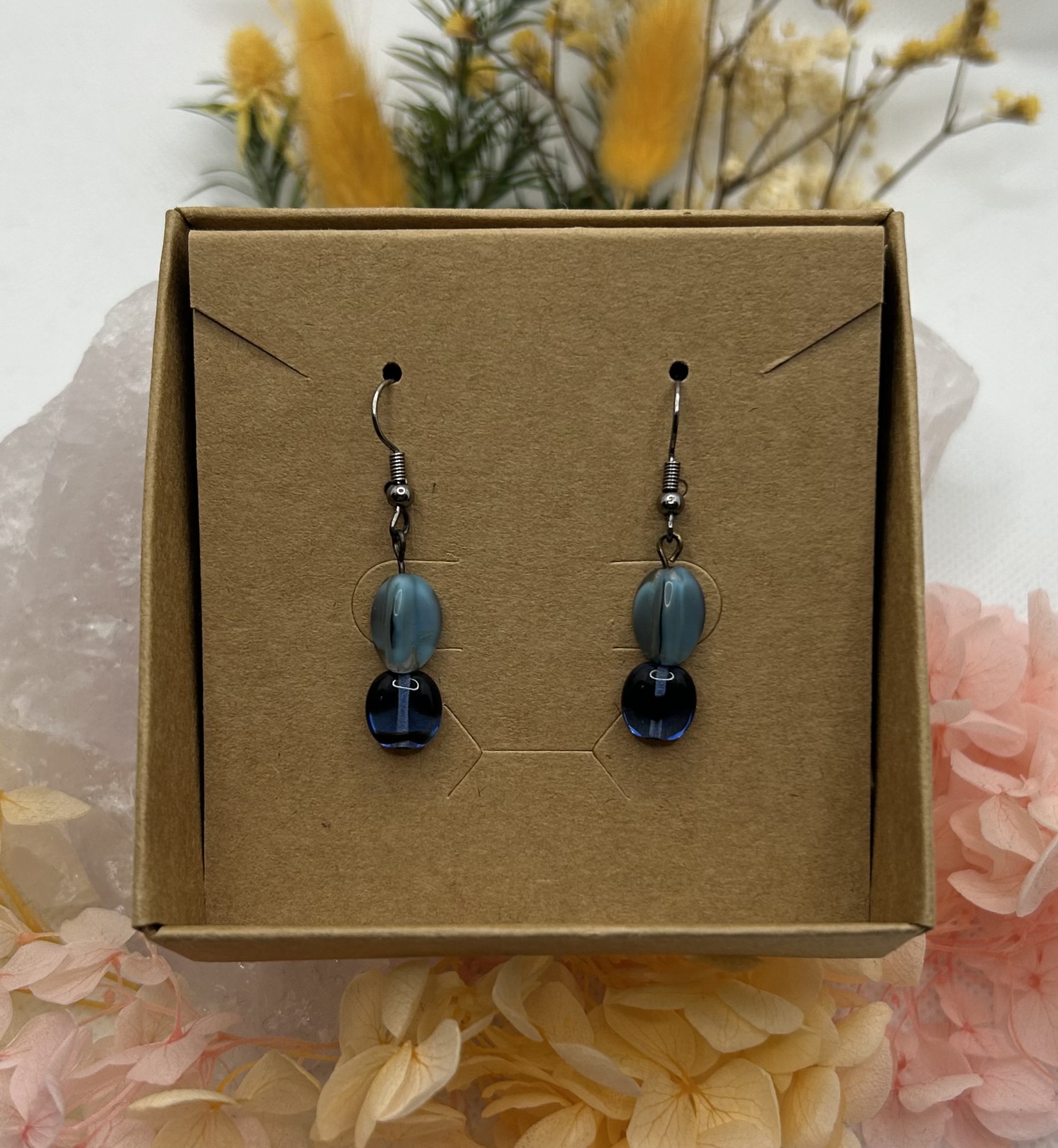 Here we have a lovely pair of vintage blue upcycled silver plate earrings. All findings are brand new. For hygiene reasons we would never reuse any findings.