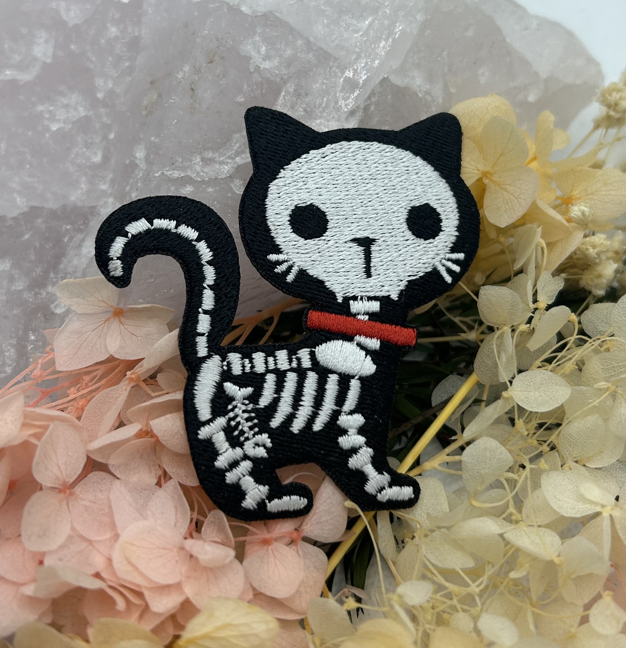 How cute is this Skelly Cat Patch, just a sweet little skeleton cat wearing its lovely striking red collar. This patch can be sewn on or ironed on so the hardest decision for you to make is what to put it on.